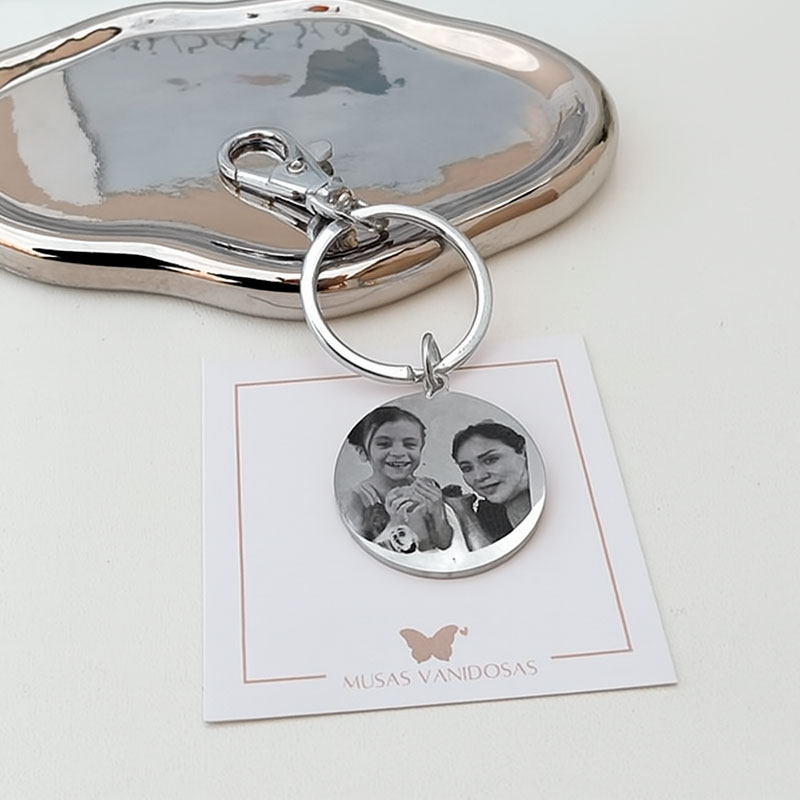 Lleva contigo ese recuerdo que ilumina tus días. ✨ Este llavero de acero inoxidable plateado graba la foto que más amas, creando un detalle único y eterno. Perfecto para regalar a mamá, papá, abuelos o a ti misma, y llevar siempre cerca a quienes hacen tu vida especial.